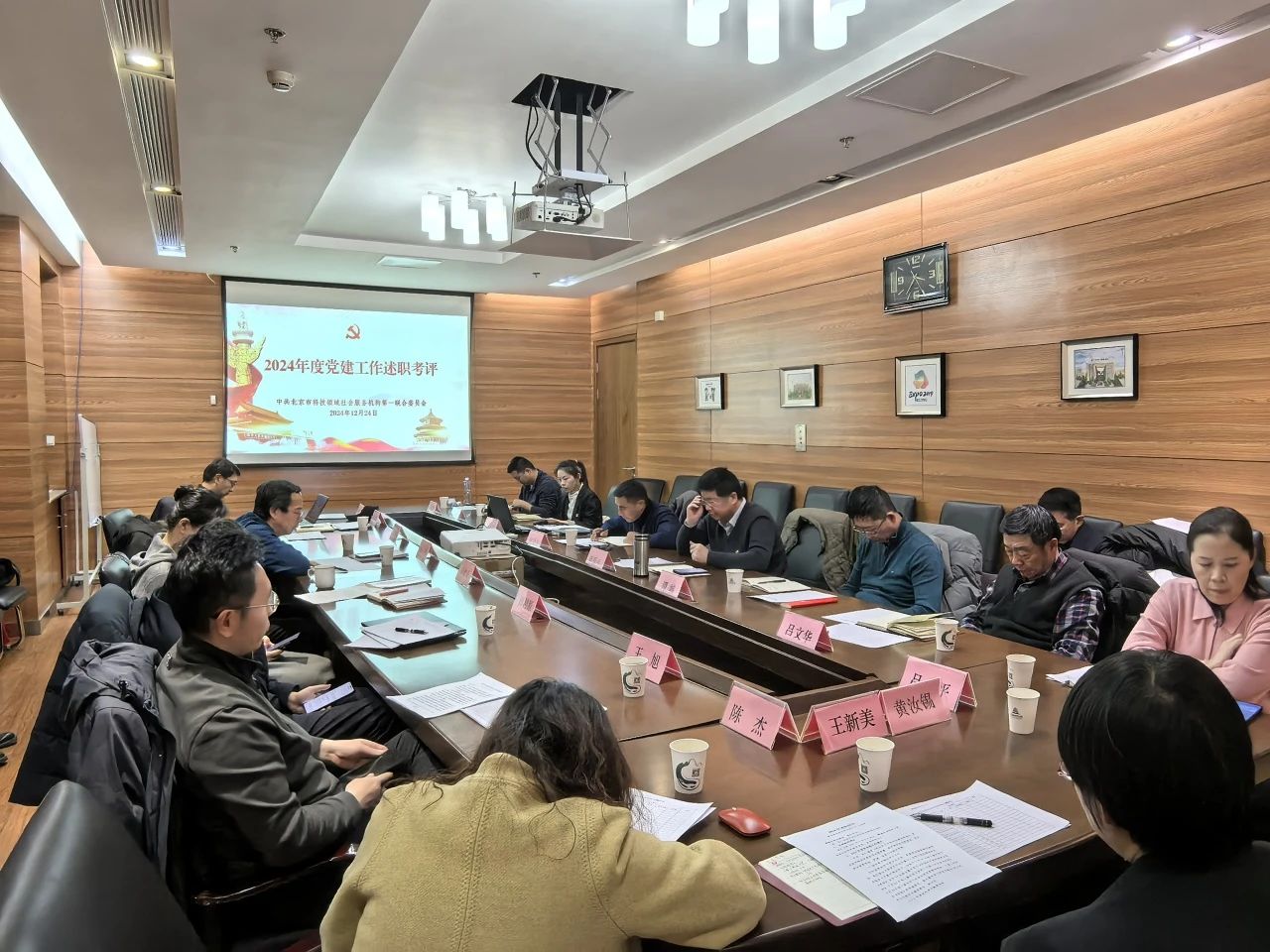 2024年12月24日,北京市科技领域社会服务机构第一联合党委在中关村人居环境工程与材料研究院会议室组织2024年度党建工作述职考评活动,党委书记赵金平、专职副书记蒋爱平、党委委员谭城出席,所属18个党支部的书记和专职党务工作者参加。