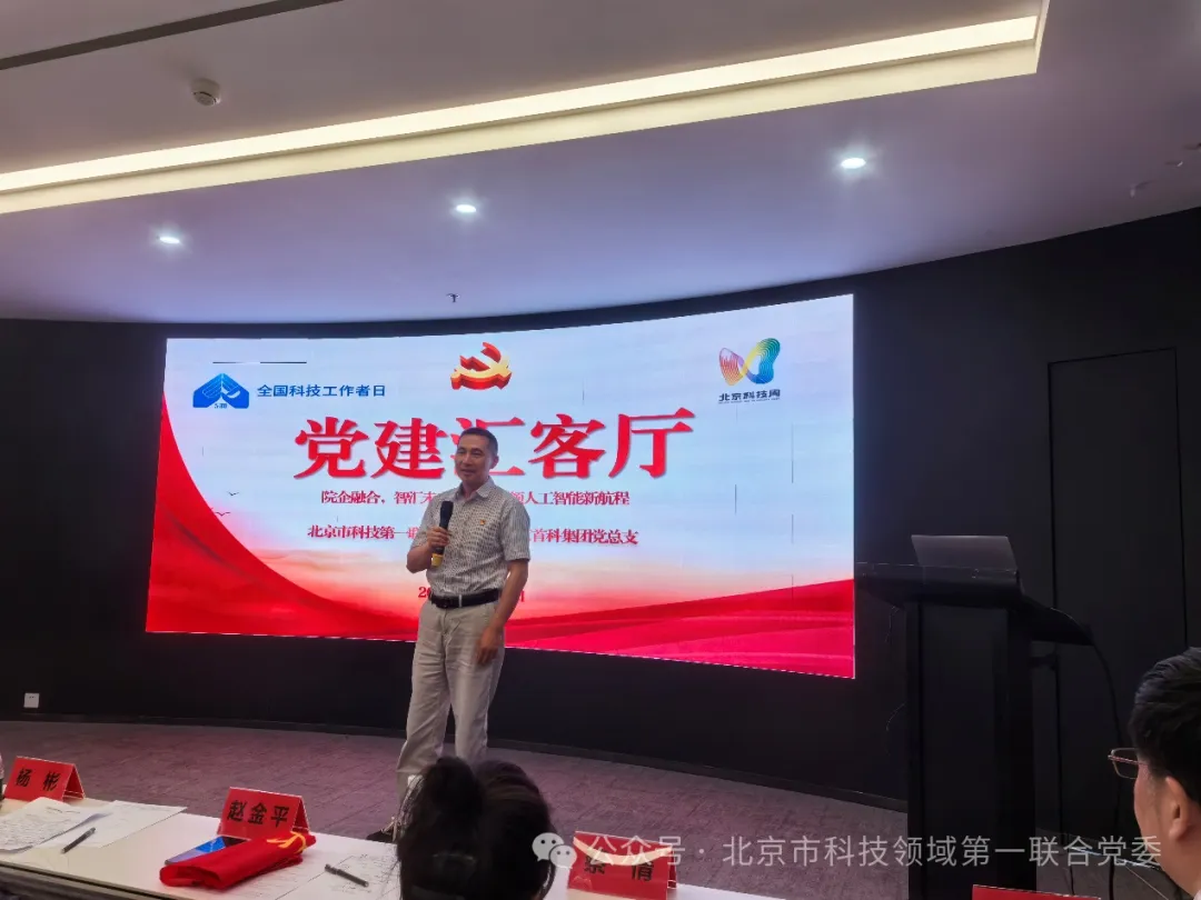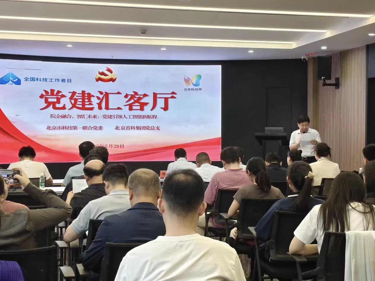 2025年5月29日,北京市科技领域社会服务机构第一联合党委与北京首科集团党总支联合组织“5.30全国科技工作者日人工智能专场”主题党日活动,中关村人居环境工程与材料研究院、北京首科集团有限公司科学技术协会、北京通厦投资开发集团有限公司、中关村华侨创新产业园、中关村烟台协同创新中心、北京赛曙科技有限公司、北京深蓝智能机器人研究院等单位承办,各单位的党员代表参加。北京市科技领域社会服务机构第一联合党委书记、中关村人居环境工程与材料研究院院长赵金平、北京首科集团党总支委员、副总经理杨彬出席。活动由北京市科技领域社会服务机构第一联合党委专职副书记蒋爱平主持。