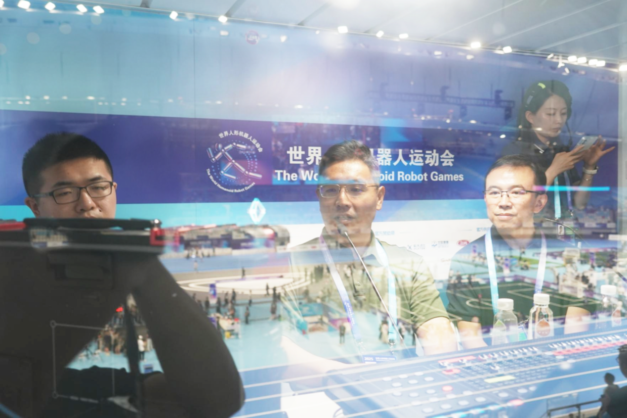 在联络及技术保障层面,赛前,全国大学生机器人大赛组委会副秘书长曾云甫就机器人比赛裁判特点进行讲解和汇报,顺利完成本届赛事的裁判培训工作,显著提升了执裁效率。赛中,北京深蓝智能机器人研究院院长、全国大学生机器人大赛组委会秘书长王旭研究员受邀担任本次世界人形机器人运动会解说专家,凭借二十余年为青年大学生群体服务所积累的丰富办赛经验,以独到的视角和生动的语言,为本次运动会外围赛各大赛项解读比赛规则、技术亮点以及参赛机器人的独特魅力,进一步拉近了观众与高科技赛事之间的距离。