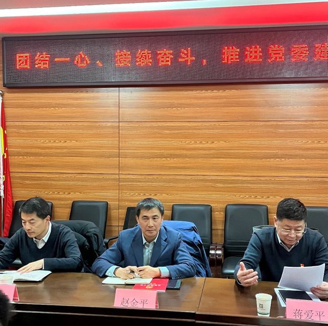 会上,专职副书记蒋爱平代表联合党委对2023年度工作进行了总结分析,他指出,2023年在综合党委的坚强领导下,科技第一联合党委团结带领各党支部、社会服务机构和全体党员群众,坚持以学习贯彻党的二十大精神为主线,以开展学习贯彻习近平新时代中国特色社会主义思想主题教育为重点,扎实开展经常性工作,推动基层党建与业务工作深度融合,以高质量党建领航高质量发展,整体建设全面提升,联合党委被综合党委评为先进党委。党委主要做法是:在“导先行”上下功夫,着力强化使命担当;在“实里做”上下功夫,着力打牢党建基础;在“强力攻”上下功夫,着力破解发展难题。基层党建的主要特点是:学习教育落实经常、党建制度基本落实、组织作用发挥明显、党员管理监督严格、阵地建设初见成效。在分析存在的问题不足时,他指出:2023年联合党委工作总体形势不错,但对照上级党委的希望要求和广大党员群众的热切期盼还有较大的差距,主要有:党建工作制度落实的质量有待进一步提高、书记队伍的实际工作能力有待进一步提高、党建工作与业务建设的深度融合有待进一步加强、党建阵地建设的力度有待进一步加强。