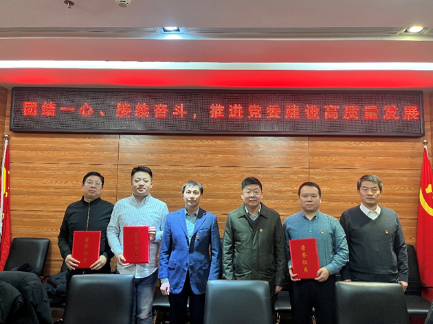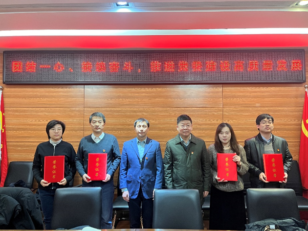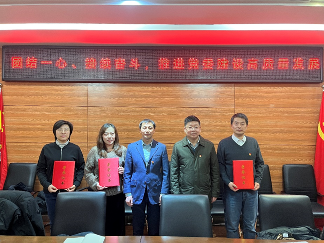 党委委员强东昌宣读了联合党委表彰优秀党支部、党支部书记和专职党务工作者的通报,党委领导给受到表彰的5个党支部、5名党支部书记和3名专职党务工作者颁发了证书。